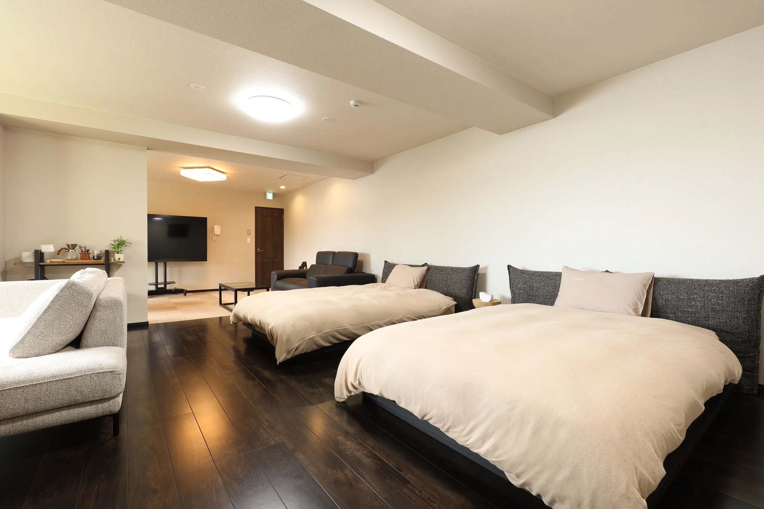 リゾートホテルとしての洗練を保ちながらも、ターコイズブルー、ベージュ、ネイビーを基調としモダンで穏やかな雰囲気がそこかしこに。玄関の扉を開けた瞬間から、悠久の季での特別な滞在がはじまります。