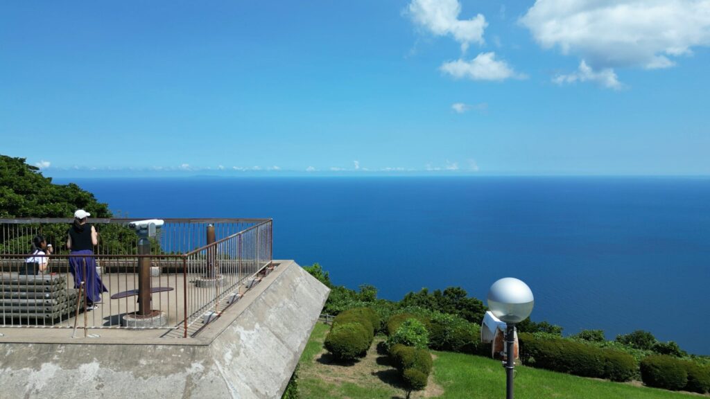 高台を吹き抜ける爽やかな海風が心地よく、眼下には青海島をはじめとする島々の姿。春にはツツジ、夏にはハマユウ、秋にはサザンカが咲き誇り、四季折々の花々が訪れる人を迎えてくれます。