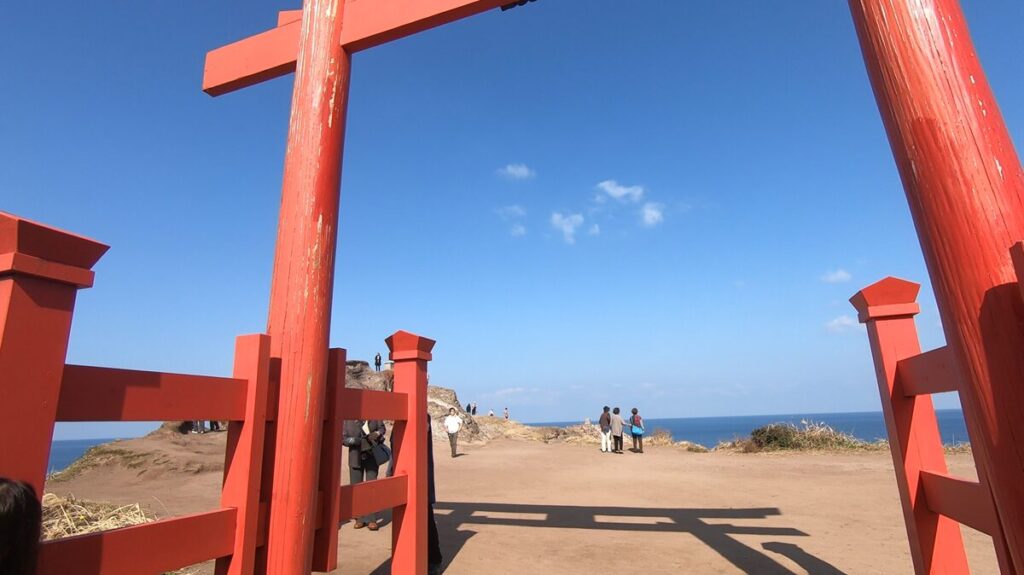 鳥居の先に広がる日本海の青と、朱色のコントラストが織りなす風景は、訪れる人の心を奪います。