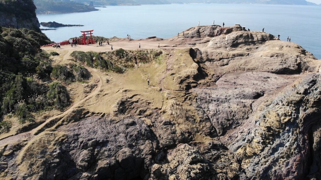 神社周辺には展望デッキや売店も整備されており、写真撮影にも最適。