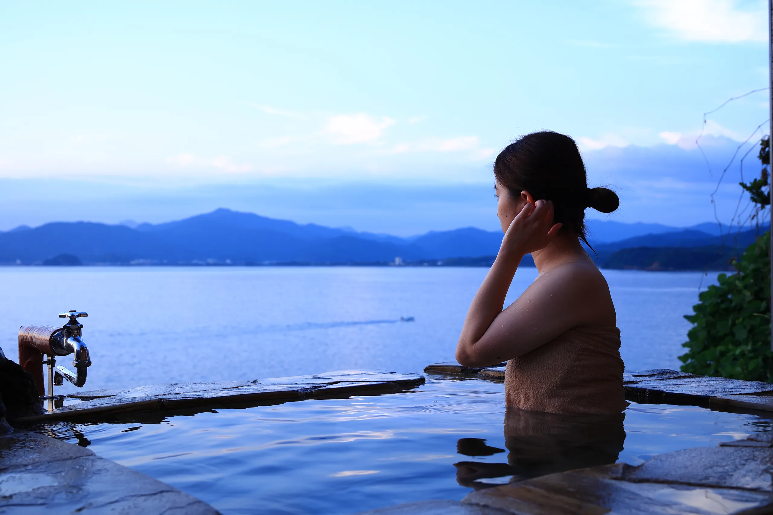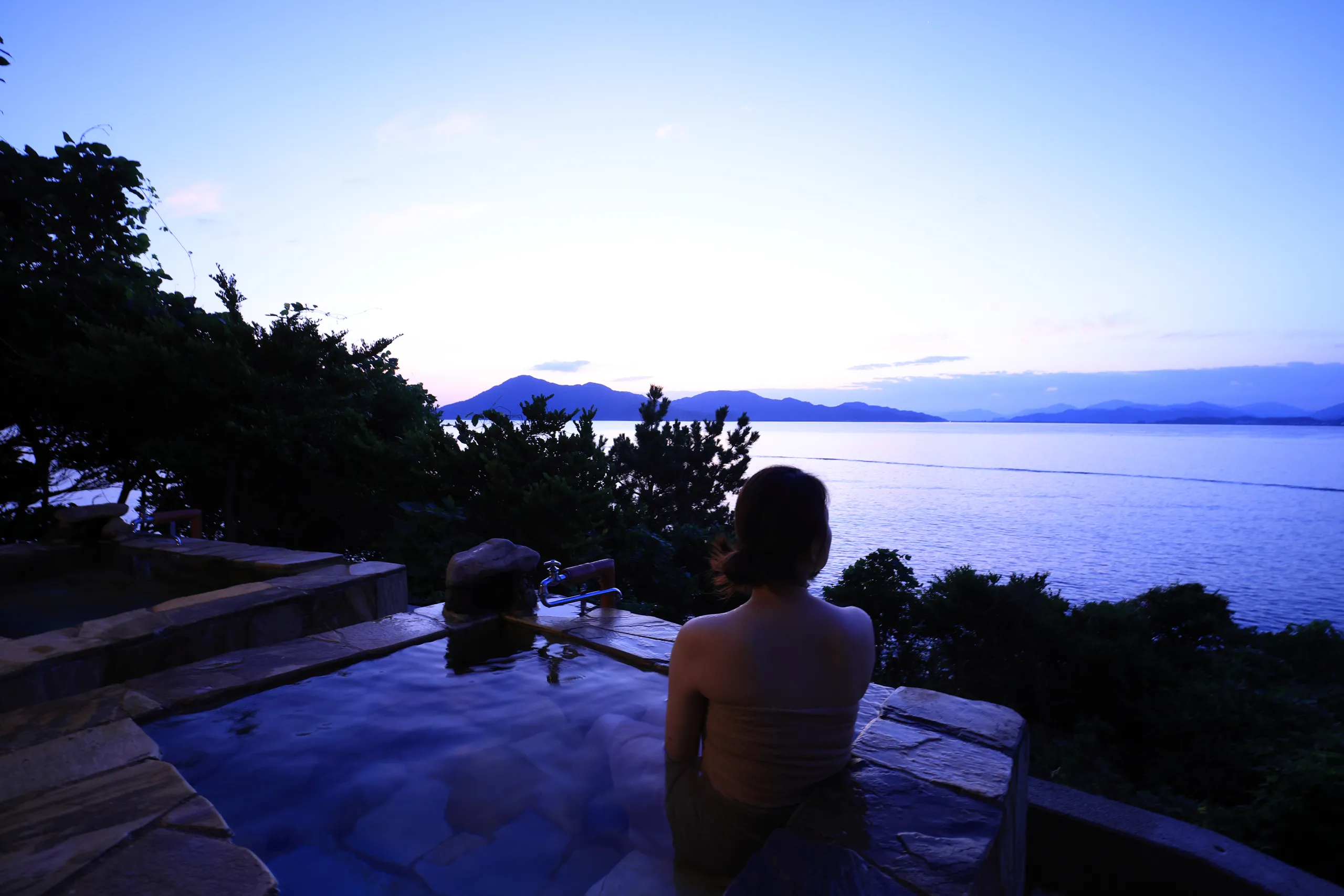山側の眺望からは、長門の緑豊かな自然を感じることができ、海とは異なる静謐な雰囲気に包まれます。
